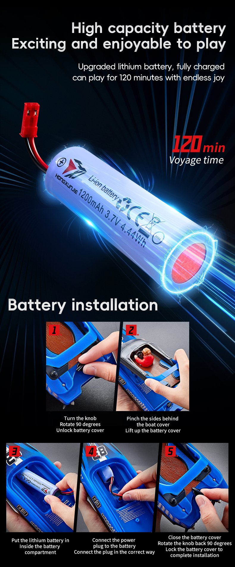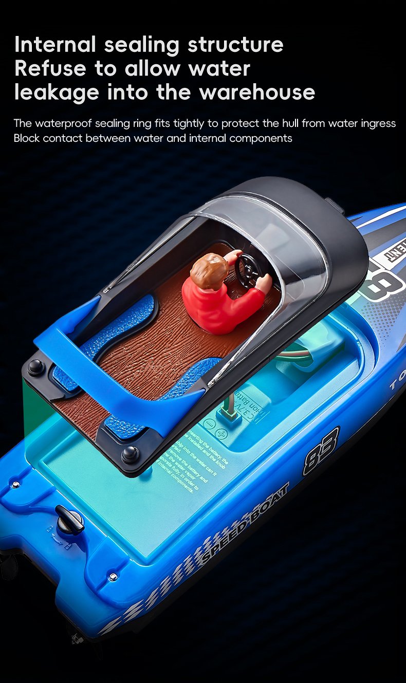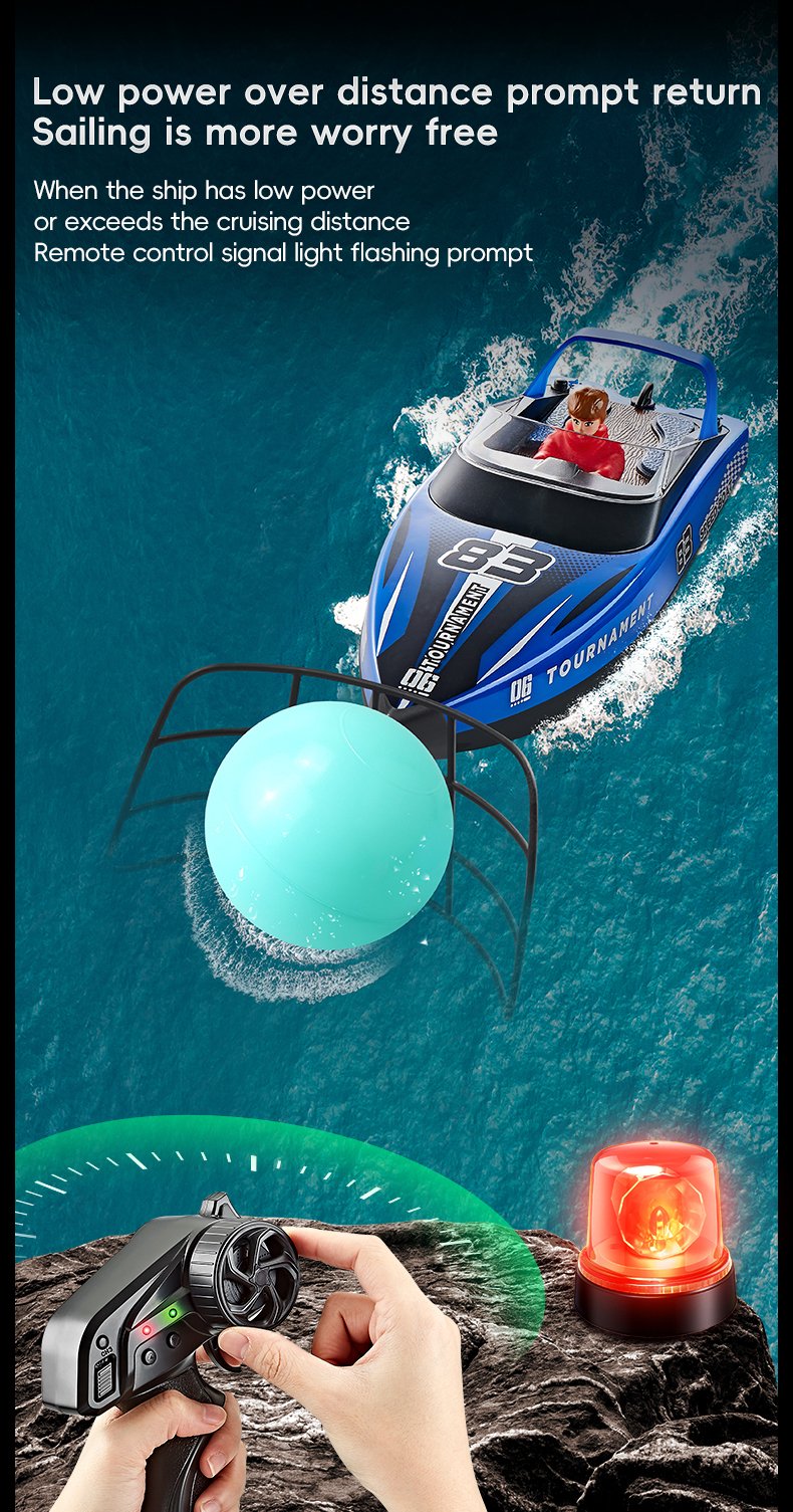 Most of our RC boats have a control range between 100–300 meters. Advanced models can reach up to 500 meters depending on the frequency system.