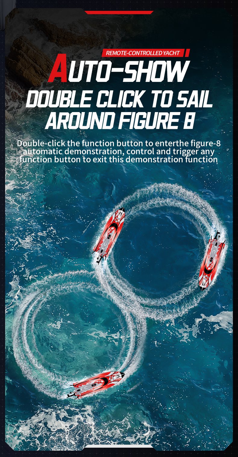 Most of our RC boats have a control range between 100–300 meters. Advanced models can reach up to 500 meters depending on the frequency system.